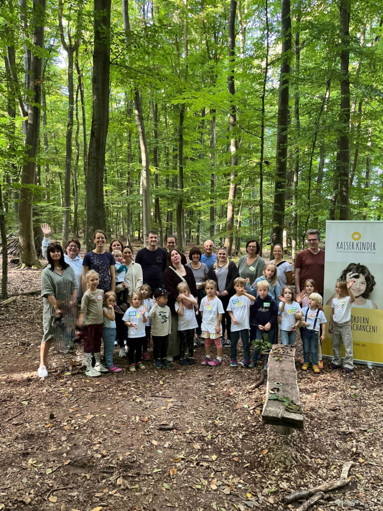 15 gut gelaunte Kaiser-Kinder nutzten die Gelegenheit, sich in der Natur auszutoben und spannende Abenteuer im Wald zu erleben.