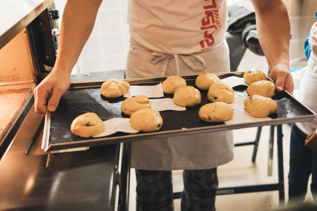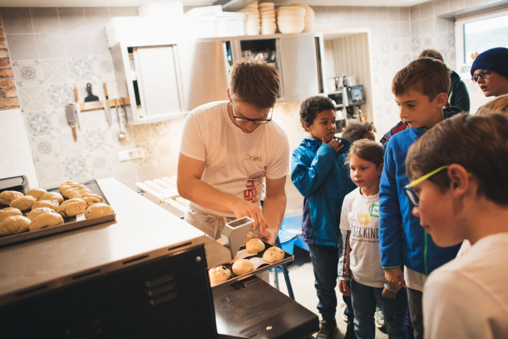 Ein weiteres Highlight war das gemeinsame Backen mit Bäckermeister Jonas: Mit viel Begeisterung formten die Kinder leckere Schokobrötchen, die anschließend frisch aus dem Ofen probiert werden durften. Zwischendurch blieb auch Zeit für Spiele an der frischen Luft, sodass Spaß und Bewegung nicht zu kurz kamen.
