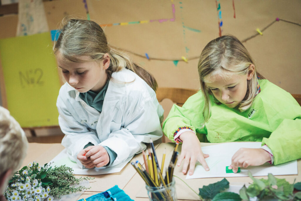 Im kreativen Teil des Tages gestalteten die Kids fantasievolle Collagen aus Naturmaterialien, bevor sie im Bürgerpark auf Entdeckungstour gingen.