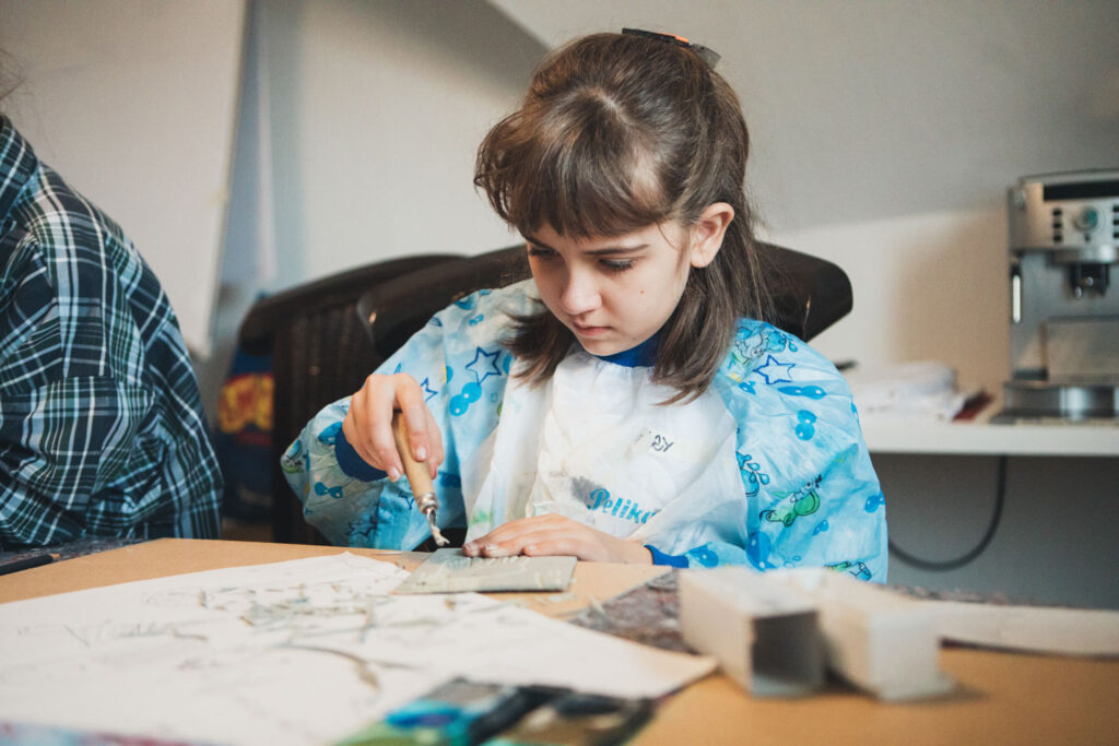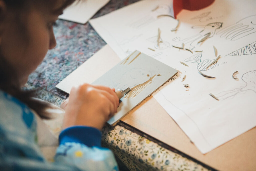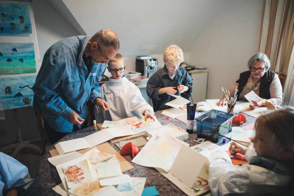 Im Kulturcafé Nebenan in Gambach erlebten die Kaiser-Kinder einen besonders kreativen Tag. Mit verschiedenen Drucktechniken gestalteten sie ihre eigenen Kunstwerke und konnten ihrer Fantasie freien Lauf lassen. Dabei entstanden viele wunderschöne und einzigartige Bilder – jedes ein kleines Meisterwerk.