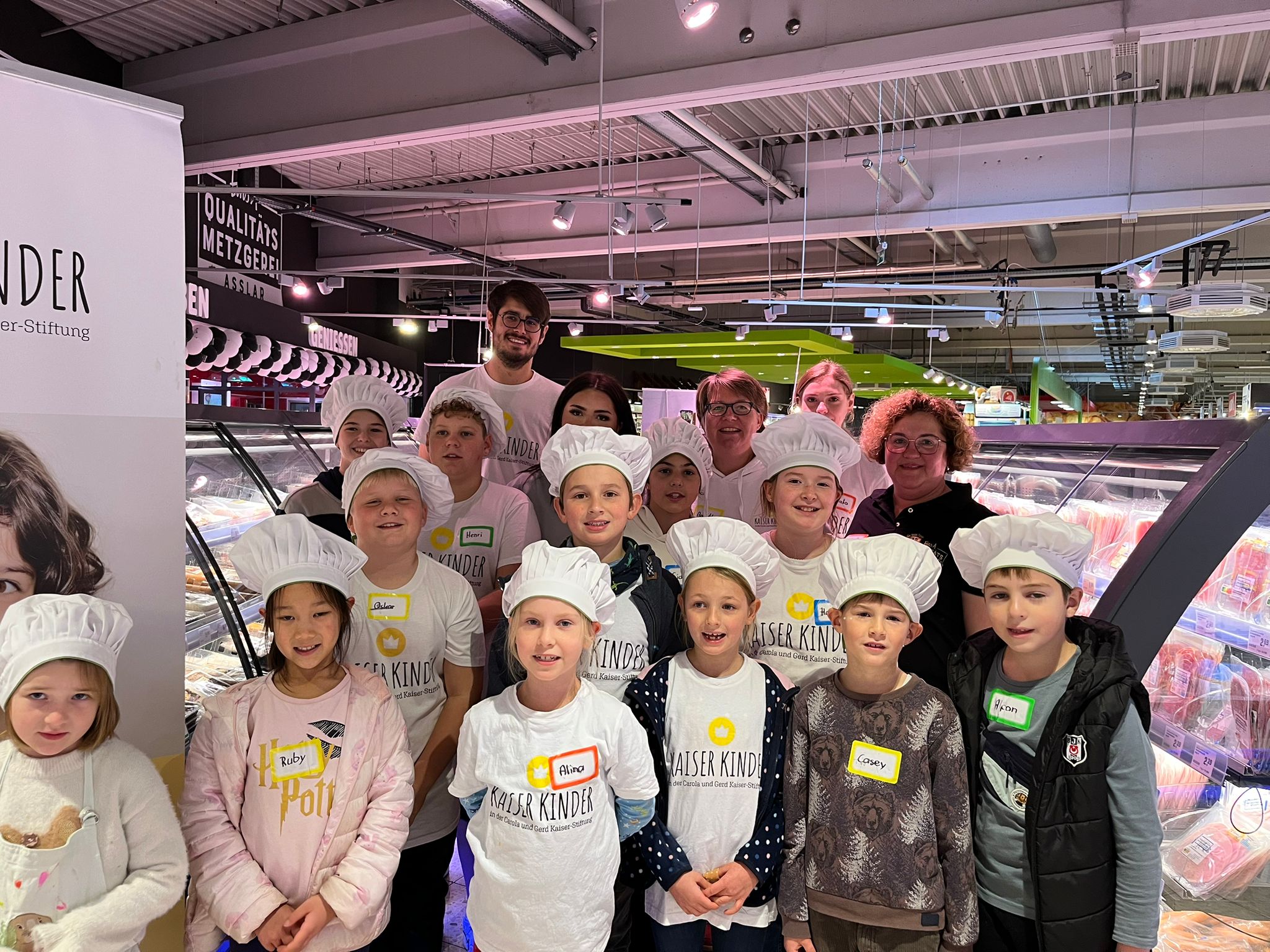 Rudi Krauss, Metzgermeister und Koch im REWE Center Asslar, รถffnete seine Profikรผche fรผr die Kinder der Kaiser-Stiftung und lud zu einem Kinderkochkurs ein.