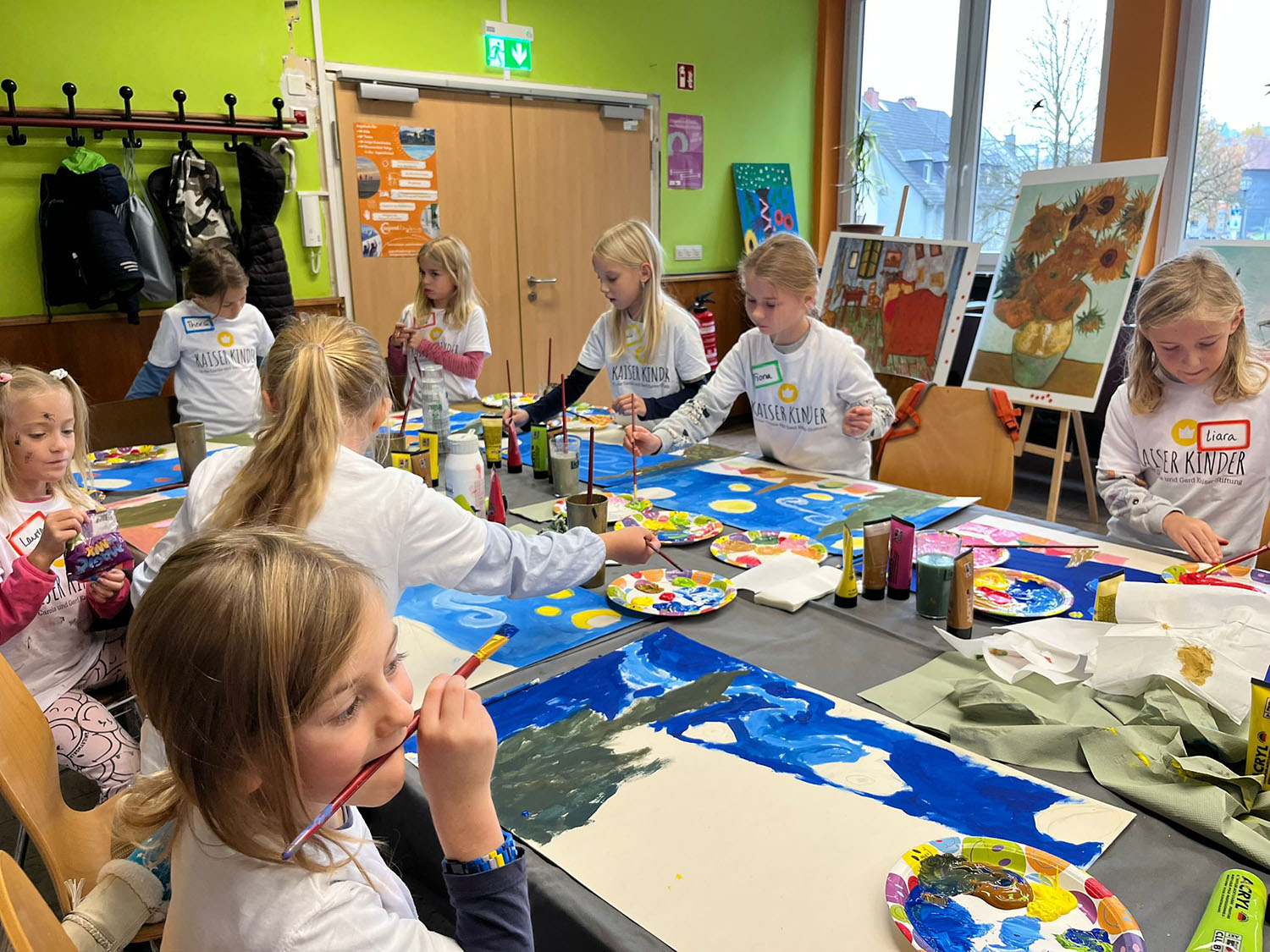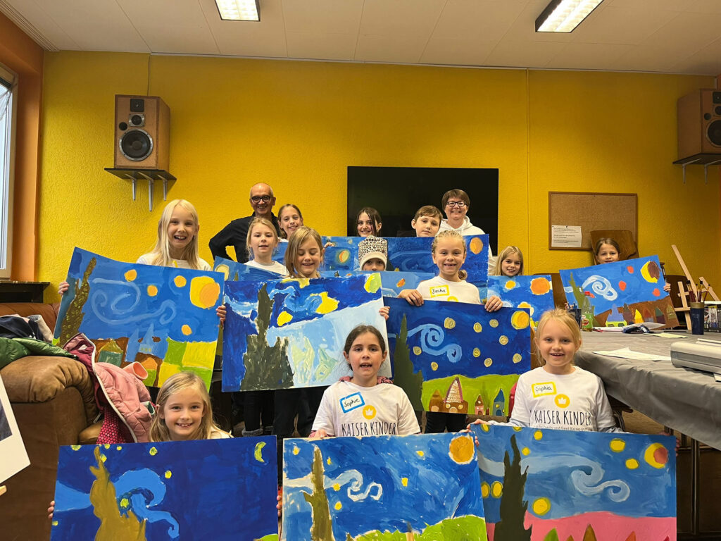 13 kunstbegeisterte Kaiser-Kinder nahmen an unserem Kinder-Kunst-Workshop zu Vincent van Gogh im Jugendzentrum in Asslar teil.