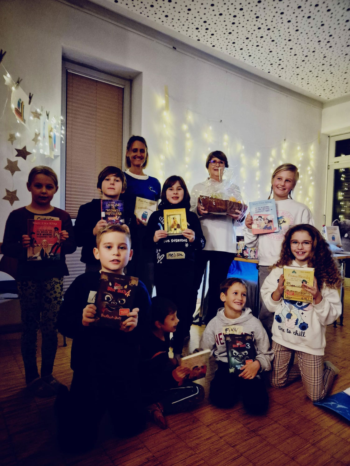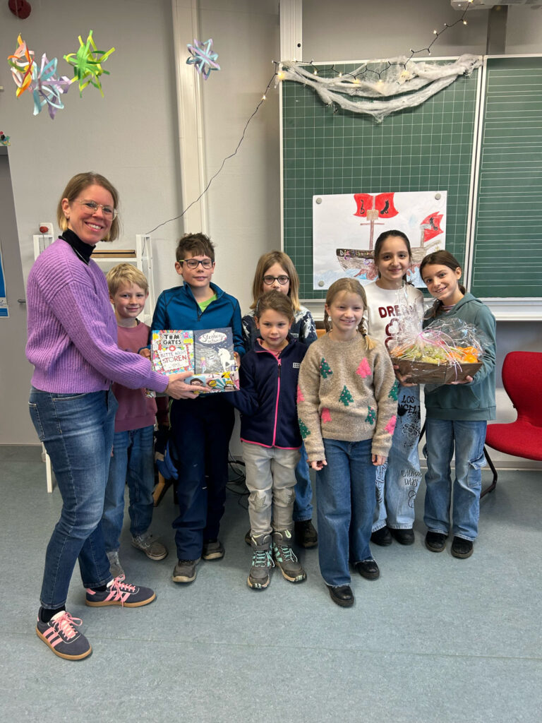 Passend dazu las Angelika vom Fรถrderverein der Stadtbibliothek aus lustigen und spannenden Kinderbรผchern vor, die das Thema aufgreifen und fรผr viele frรถhliche Gesichter sorgten.
